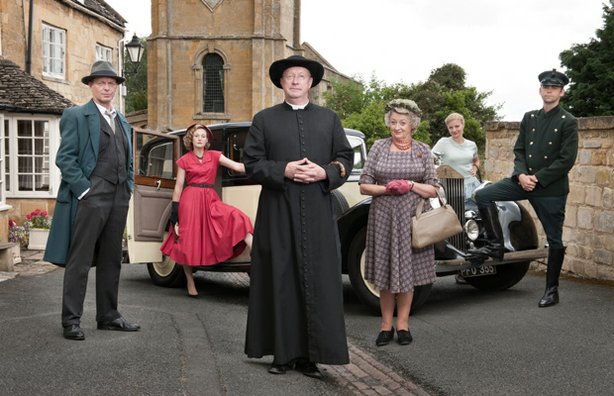 Ylipäätään pidän Isä Brownin kotikutoisesta ja vähän nukkavierustakin daytime-fiiliksestä. Sarjan hahmot ovat pienine naarmuineen ja keskinäisine skismoineen sympaattisia ja hellyttäviä. Lumoavan idyllinen kuvausympäristö tuntuu todellakin jumahtaneen 1950-luvulle: on kapeita, kivettyjä katuja, jyrkkiä portaita, valurautaisia kaiteita ja paitinoituneita ovia ja ikkunankarmeja. Cotswoldin kuvankauniita katuja ja maisemia katsellessa ei voi kuin ihmetellä, miksei tällaisia paikkoja enää rakenneta. Kokonaisuus on kaunis, kompakti ja yksinkertainen, ja nostalgiannälkäiset – joihin itsekin lukeudun – ihastuvat sarjaan heti. Yksi tuotantokausi tätä sorttia riitti kuitenkin minulle.