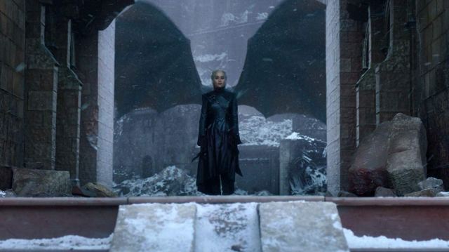 Tuotantokauden viidennessä jaksossa Daenerysin armeija hyökkää Kuninkaansatamaan. Lyhyen mutta armottoman yhteenoton jälkeen Cersei antautuu. Sodankäynnin sääntöjen mukaan taistelun pitäisi loppua tähän, mutta Daenerys ei ole saanut tarpeekseen, vaan tuhoaa Kuninkaansataman täysin ja tappaa silmittömässä raivossaan lukemattomia viattomia siviilejä. Hänestä paljastuu Mad Queen, Hullu Kuningatar.